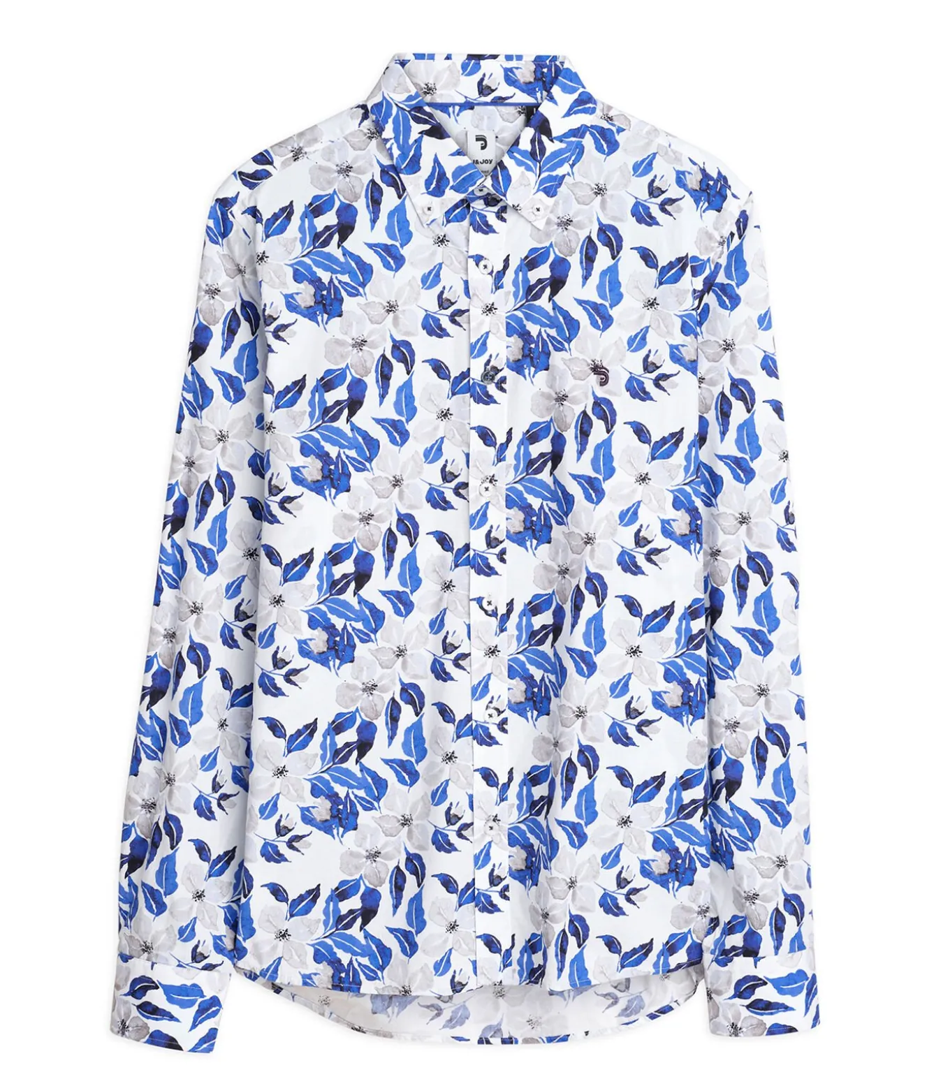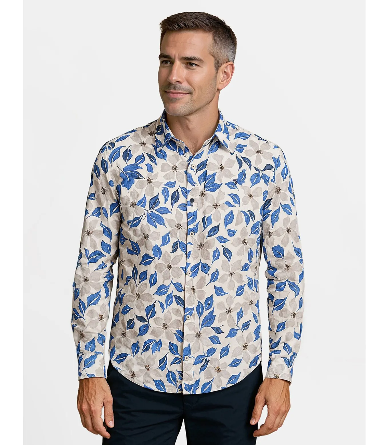 Ga voor een frisse en elegante look met dit blauwe herenoverhemd, geïnspireerd op de natuurlijke schoonheid van het Andesgebergte. Gemaakt van 100% katoen, biedt dit overhemd optimaal comfort en een strakke, rechte pasvorm. Het botanische printpatroon zorgt voor een frisse en moderne touch, terwijl de klassieke button–downkraag en de klassieke knoopsluiting een vleugje verfijning toevoegen. De lange mouwen en afgeronde manchetten zorgen voor een strak silhouet, en het geborduurde J&JOY–logo op de borst en het koord geven een extra vleugje stijl. Bestel nu en voeg een must–have toe aan je lentegarderobe.