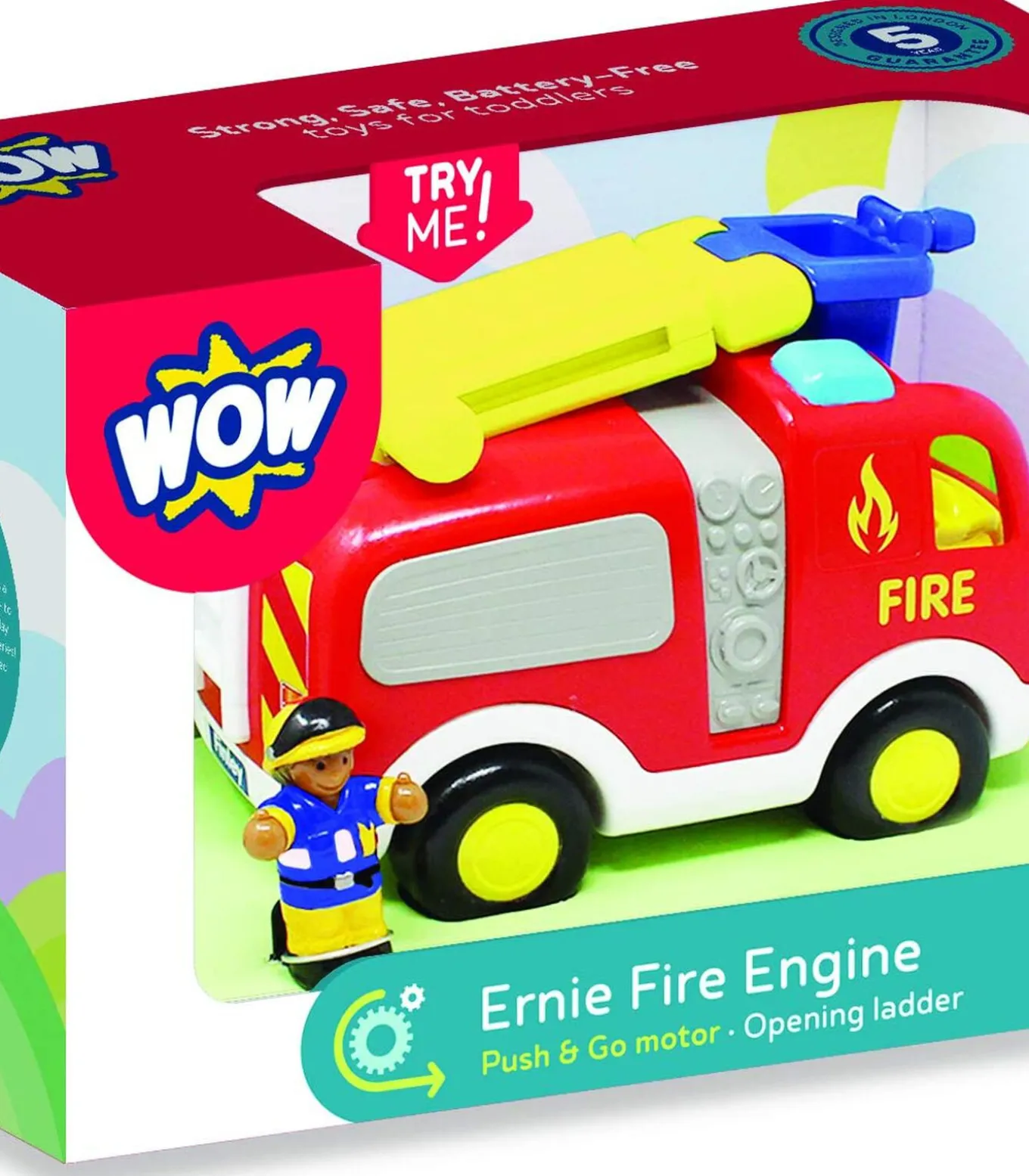 WOW Toys brandweerauto Ernie Fire Engine speelgoedvoertuig oranjeMet de stoere brandweerauto van WOW Toys, de Ernie Fire Engine, beleef je elke dag spannende reddingsavonturen! Deze kleurrijke speelgoedbrandweerauto is perfect voor kleine helden die graag brandjes blussen en mensen willen helpen. Dankzij de krachtige wrijvingsmotor rijdt Ernie razendsnel naar elke noodsituatie toe.De klik & draai ladder maakt het mogelijk om zelfs de hoogste plekken te bereiken, terwijl de brandweerman met één handomdraai de achterdeur opent en een noodbarrière onthult. Ernie Fire Engine is gemaakt van stevig plastic, heeft geen batterijen nodig en is geschikt voor kinderen vanaf 3 jaar. Laat de fantasie van je kind de vrije loop met dit educatieve en veilige speelgoedvoertuig!Extra informatieGeschikt voor kinderen vanaf 3 jaarInclusief klik & draai ladder en noodbarrièreWerkt zonder batterijen dankzij wrijvingsmotorGemaakt van stevig, veilig plastic