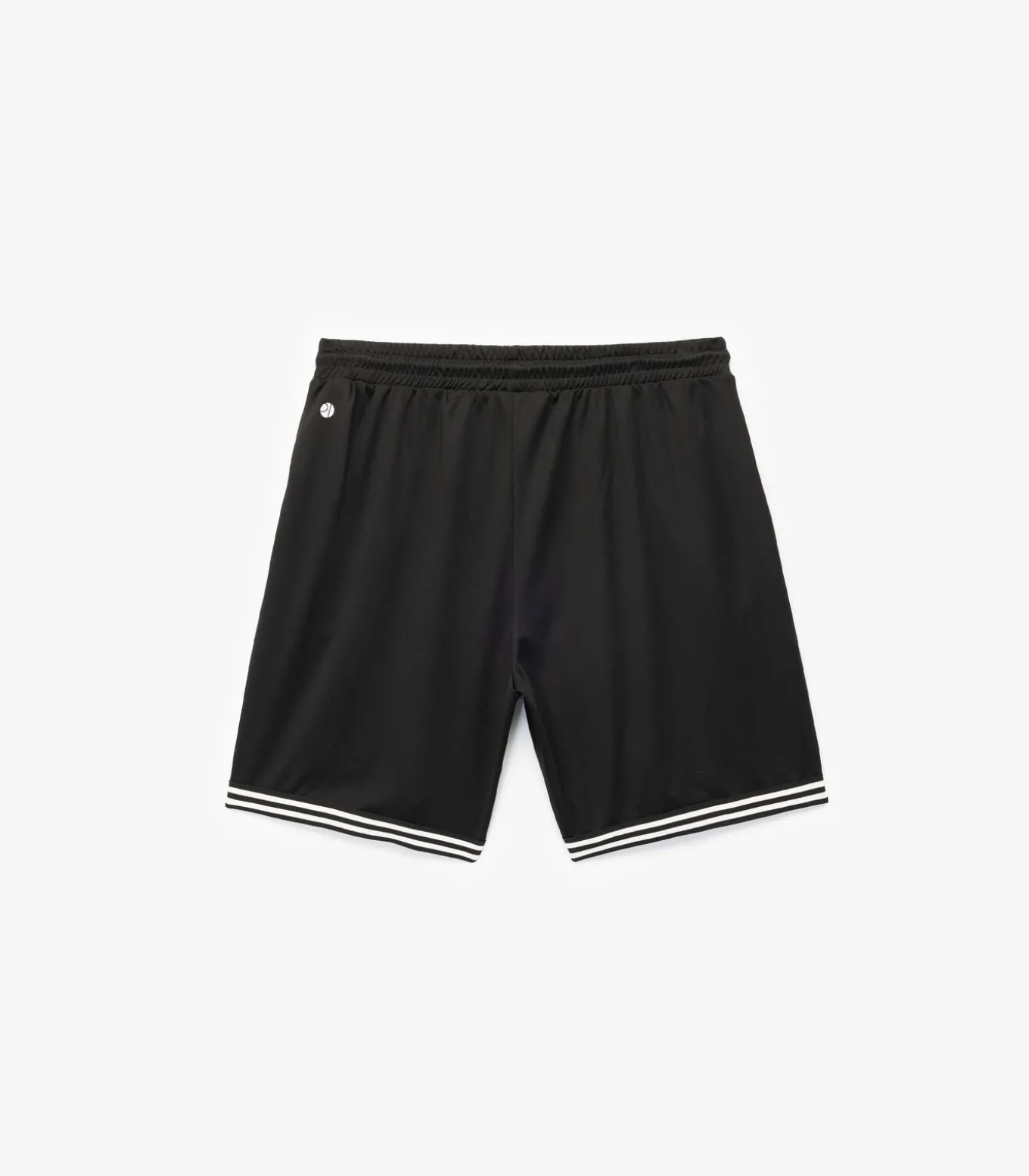 Deze zwarte sportkorte broek biedt ultiem comfort voor zowel dagelijkse als sportieve activiteiten. Het ontwerp heeft een elastische taille met trekkoord en functionele zakdetails voor gemak. De broek is afgewerkt met subtiele streepdetails aan de onderzijde, wat zowel stijl als functionaliteit toevoegt. Een onmisbaar stuk in je sportgarderobe dat perfect te combineren is met een basic t–shirt en sneakers voor een complete look.